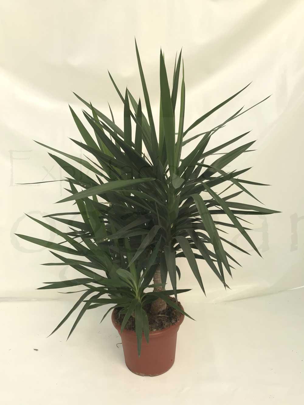 Produce largas hojas (hasta 1 metro) de color verde brillante, algo carnosas, sin espinas y en forma de cintas. Las flores aparecen en grandes panículas y tienen forma de campana y color blanco o crema. Los pétalos de estas flores son comestibles. Es una planta de fácil cultivo que se utiliza como planta de interior o en exterior en climas como el mediterráneo.